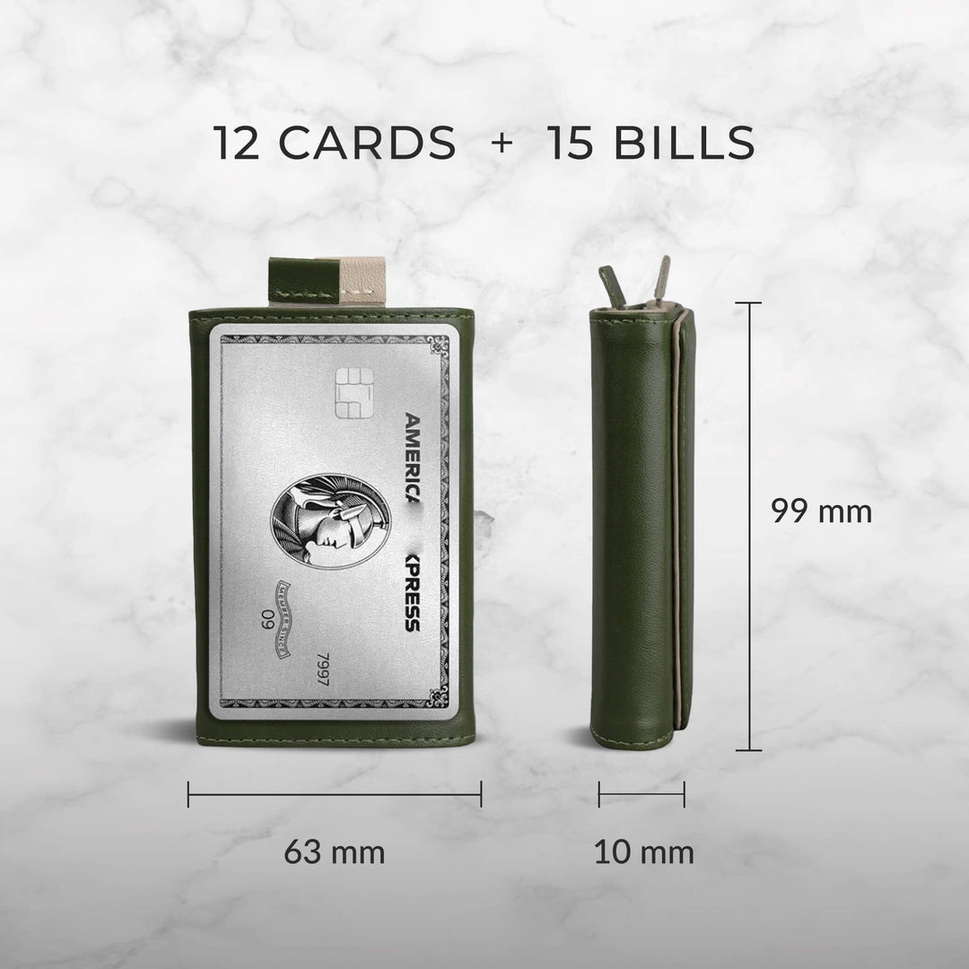 Compact dimensions 6.3 x 9.9 x 1 cm (2.48 x 3.89 x 0.38 inches) ensure it fits effortlessly in your pocket without bulking up. Despite its slim profile, it holds up to 12 cards and 15 bills while maintaining its sleek design.
