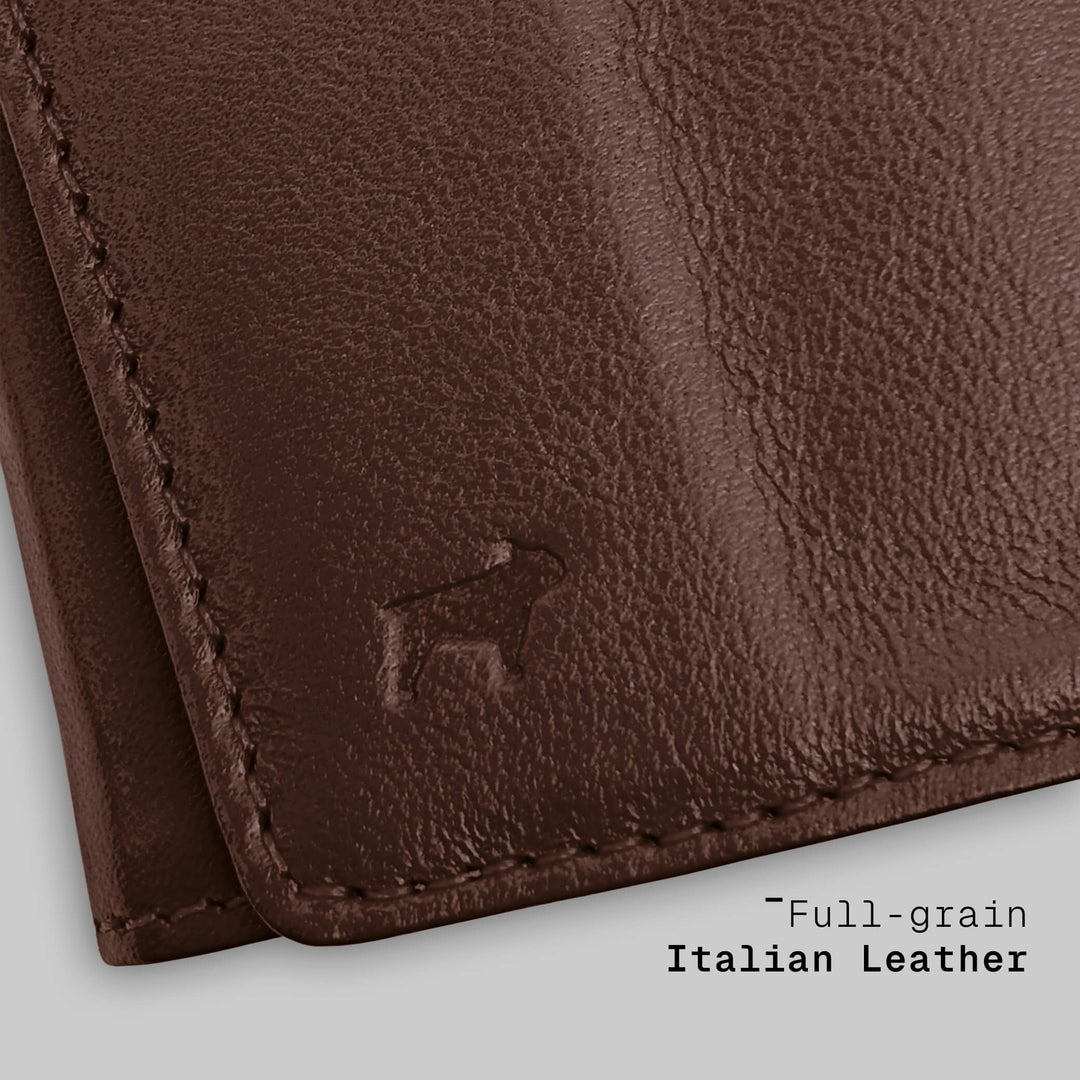 We use eco-friendly, Full-Grain Italian Leather, the highest grade available. It’s the same leather trusted by luxury artisans for generations. Few brands commit to this level of quality, and after years of sourcing, we simply haven’t found a better one.