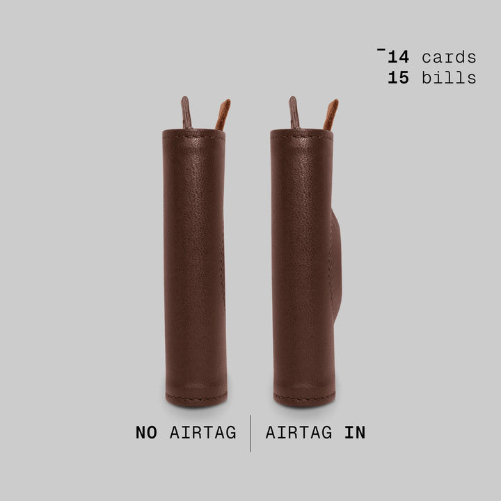Our AirTag-compatible wallets feature a custom pocket designed specifically to fit your Apple AirTag securely, but you’ll need to add your own.