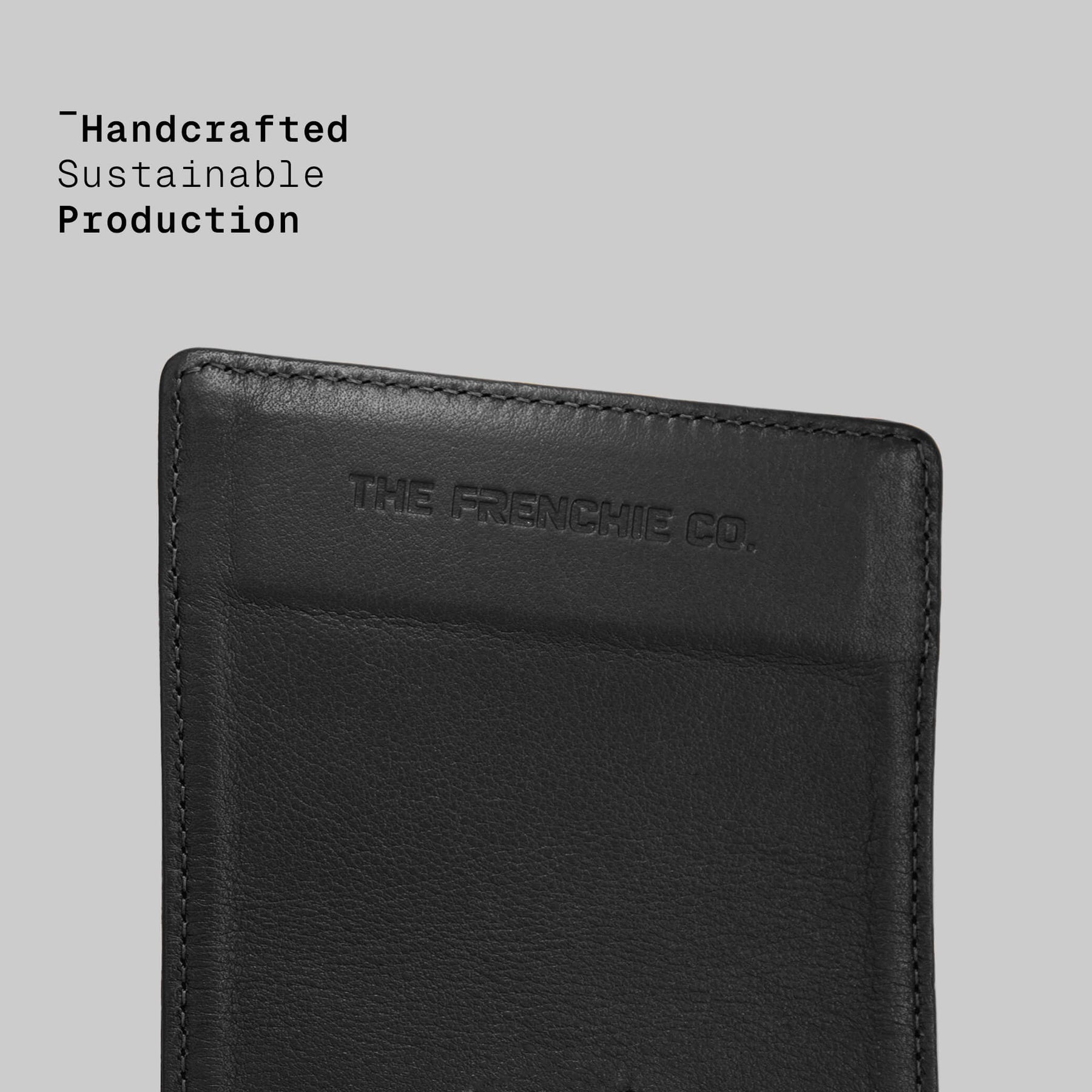 Each wallet is meticulously handcrafted in small batches by skilled artisans, combining traditional leatherworking techniques with modern precision. Our limited production runs and precise cutting methods maintain a minimum-waste approach, reducing environmental impact while preserving exclusivity.