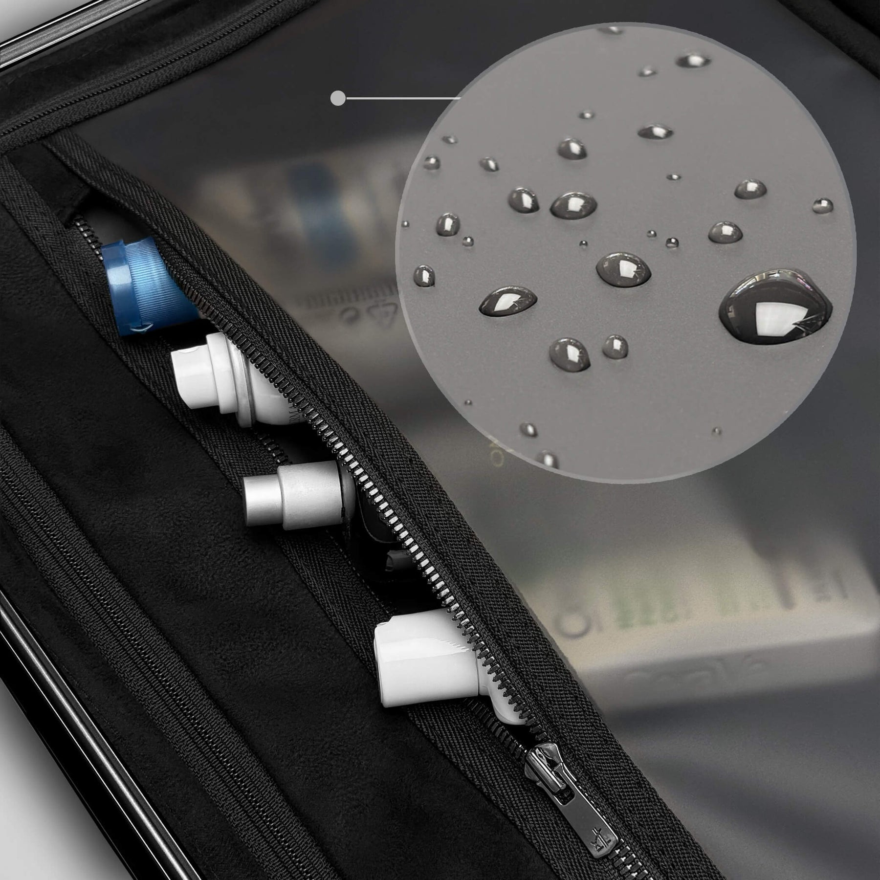 Seamless external closure replaces traditional zippers with a TSA - approved quick lock. Prevents punctures from thieves, adds water resistance, and allows faster, smoother access.