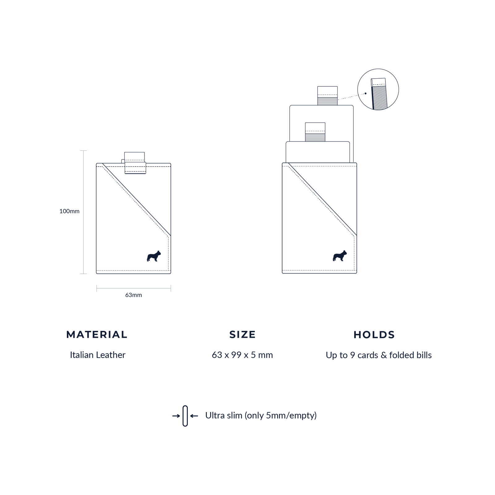 Our slimmest design ever blends simplicity and style, offering space for your essential cards and folded bills. With three streamlined pockets, it ensures effortless access and everyday organization. Handcrafted from premium Italian leather and upholding our signature quality.
